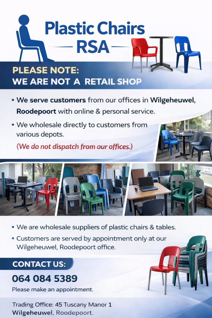 Plastic Chairs RSA, sources and supplies our quality products from a selected group of manufacturing partners, whose products have proven to be superior, tested and approved by our customers in real-world, HEAVY-DUTY environments.