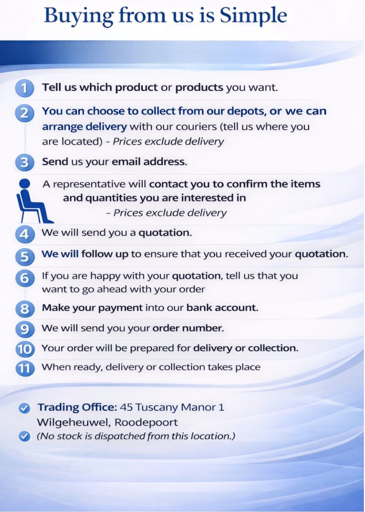 “Goedkoop is Duurkoop” – we only supply Quality, HEAVY DUTY, Locally Manufactured Furniture Items.